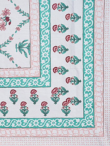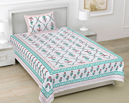 Turquoise Blue Floral 180 TC Cotton Single Bedsheet with 1 Pillow Cover (BSB1105)