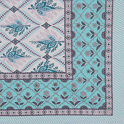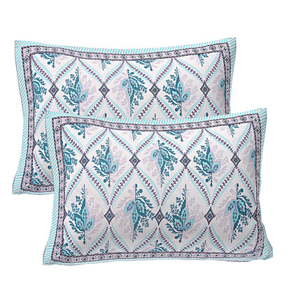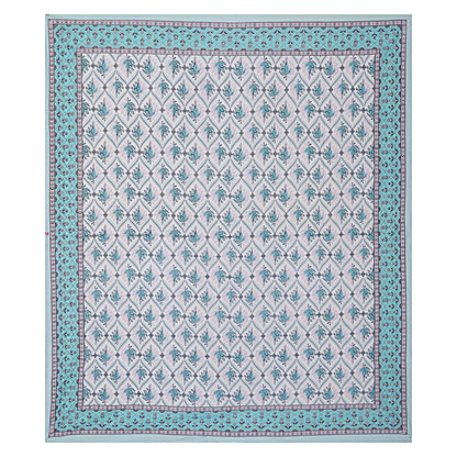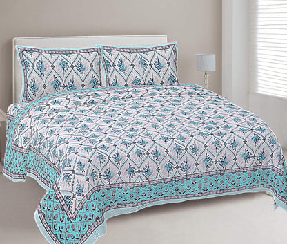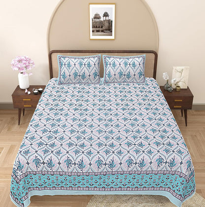 Turquoise Blue Floral Printed Double Bedsheet With 2 Pillow Covers (ADB1460)