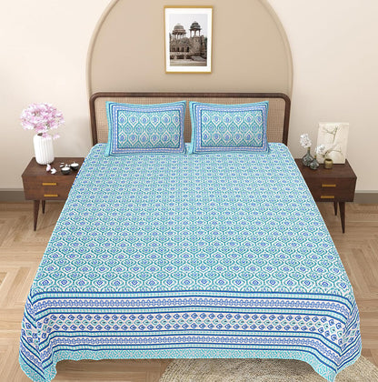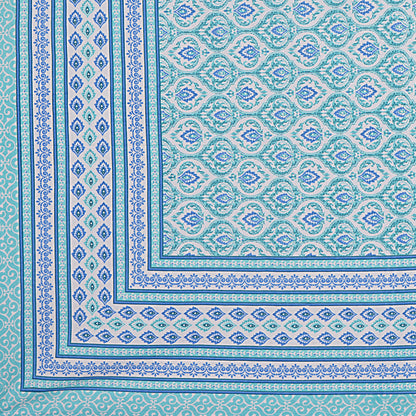 Turquoise Blue Floral Printed Double Bedsheet With 2 Pillow Covers (ADB1465)