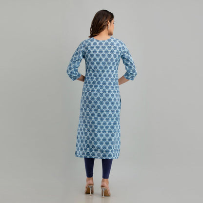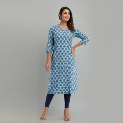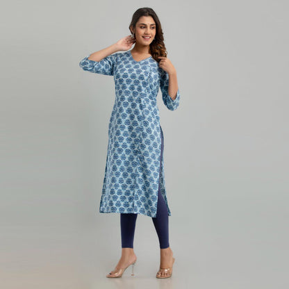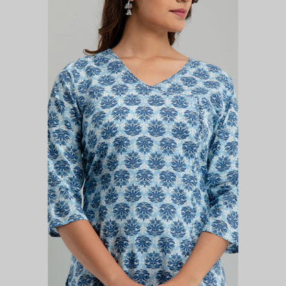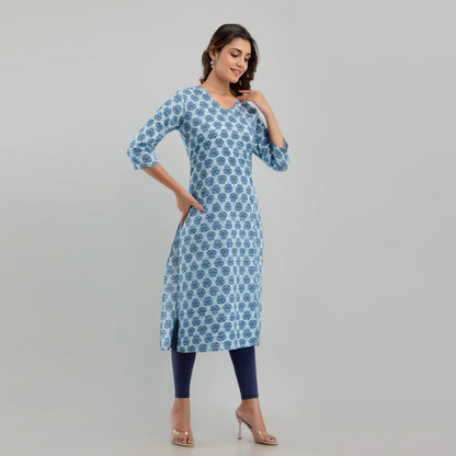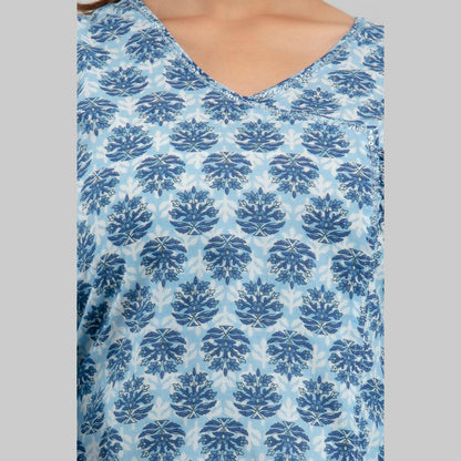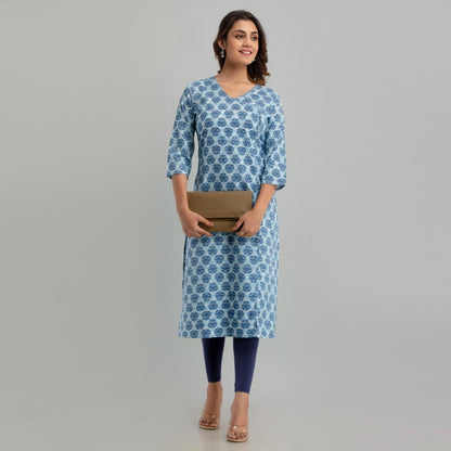Women Light Blue Floral Print Straight Kurta (SHKUP1221)