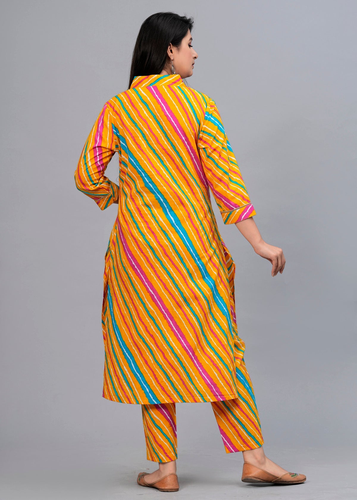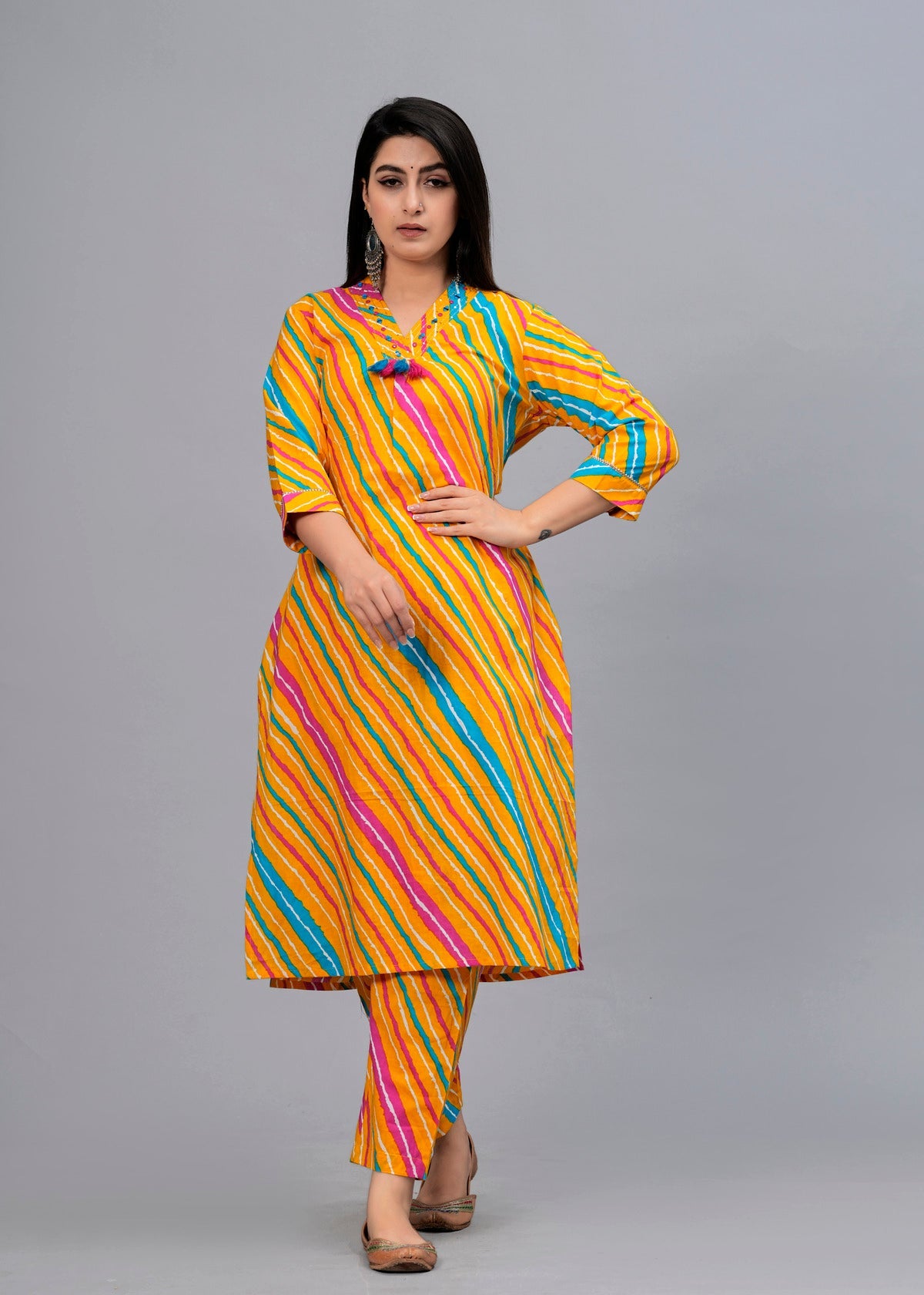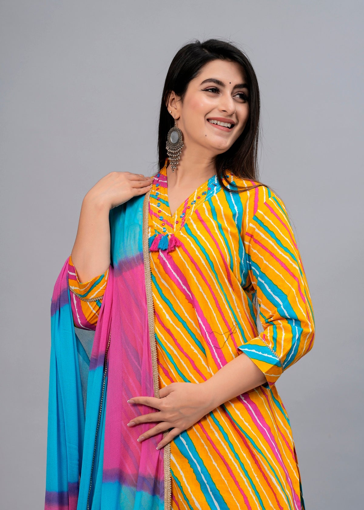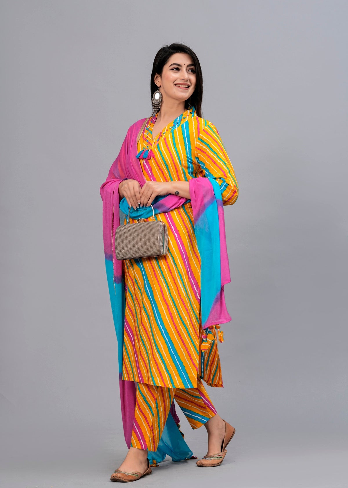 Women Multicolor Leheriya Printed Kurta with Trousers & Dupatta