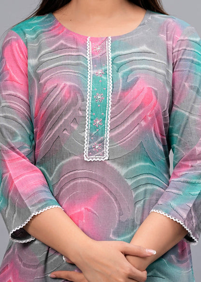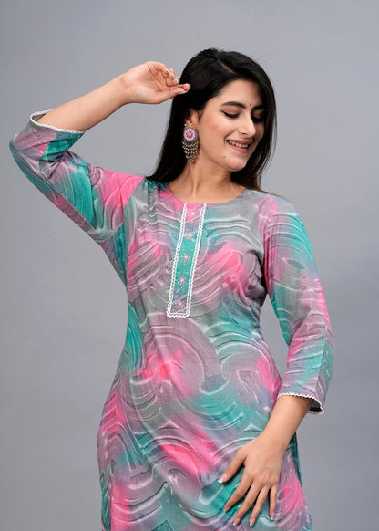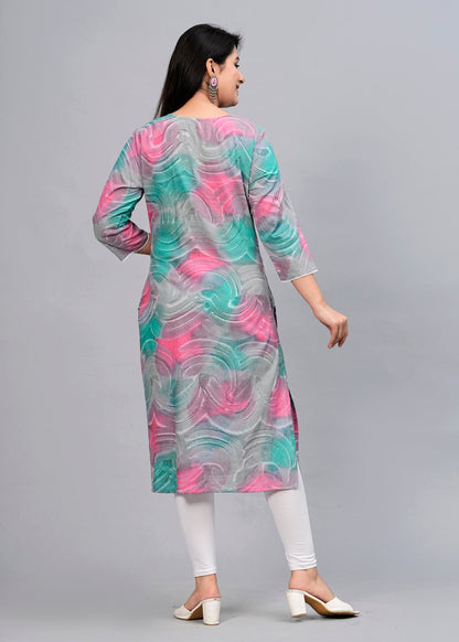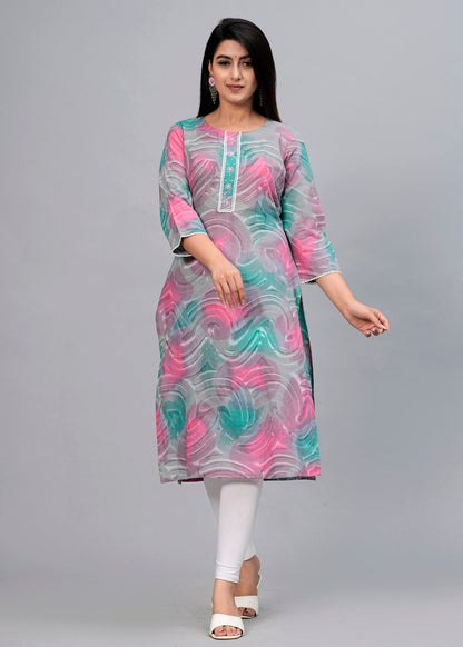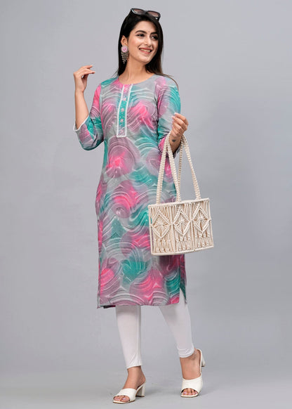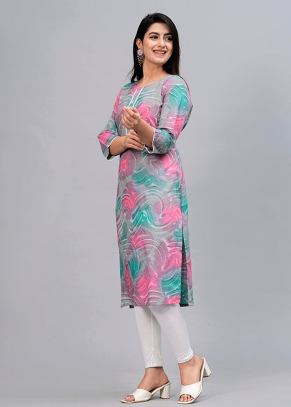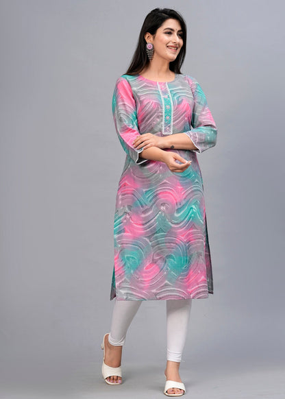 Women Pink & Turquoise Digital Printed Straight Kurta