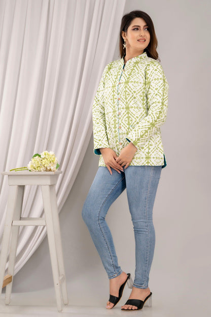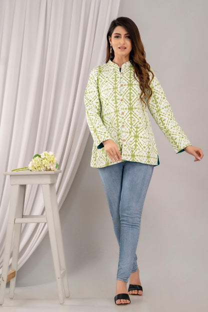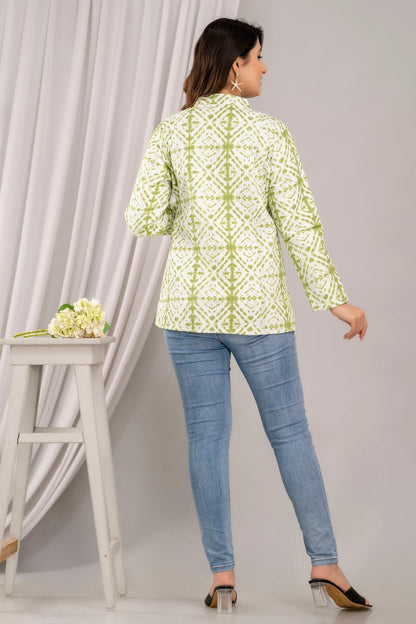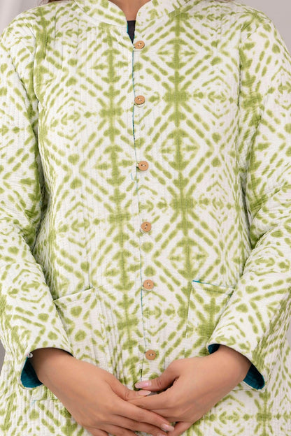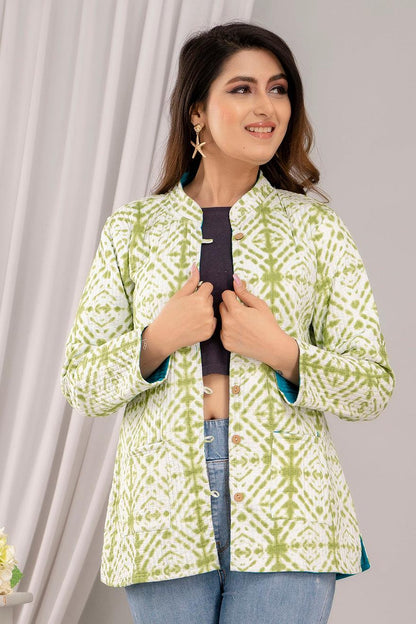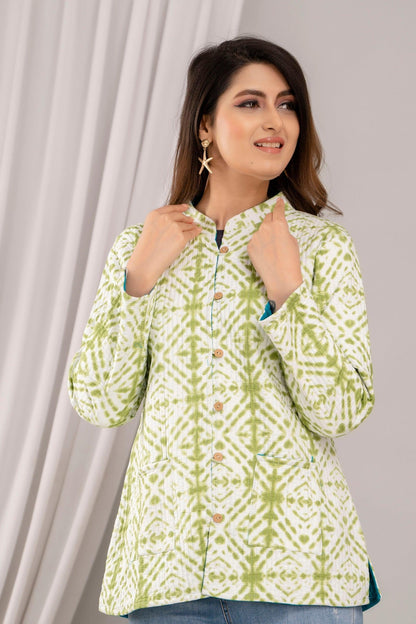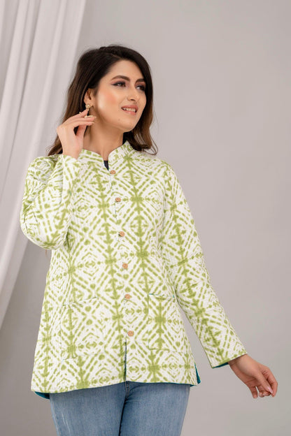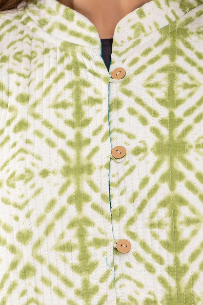 Women Printed Lightweight Cotton Quilted Light Green Jacket - SHKL1018