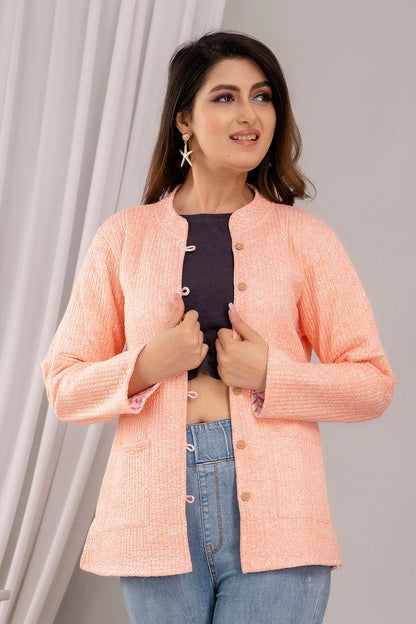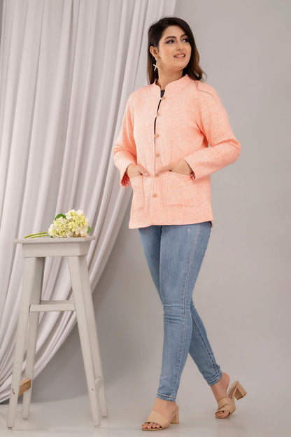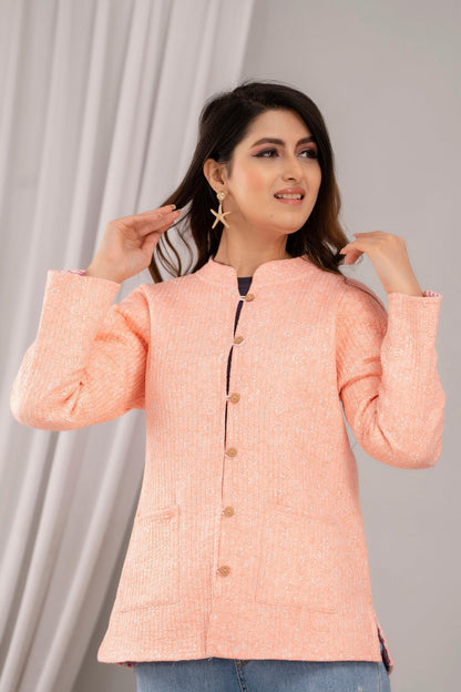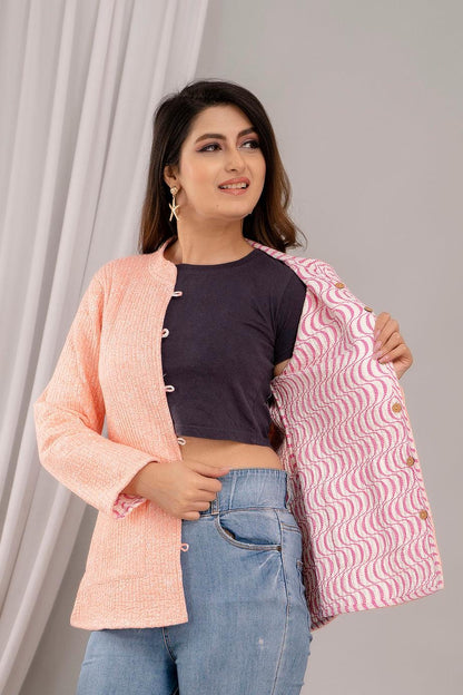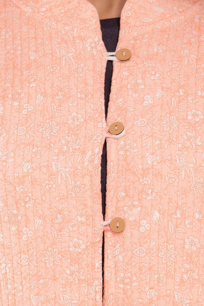 Women Printed Lightweight Cotton Quilted Peach Jacket - SHKL1020