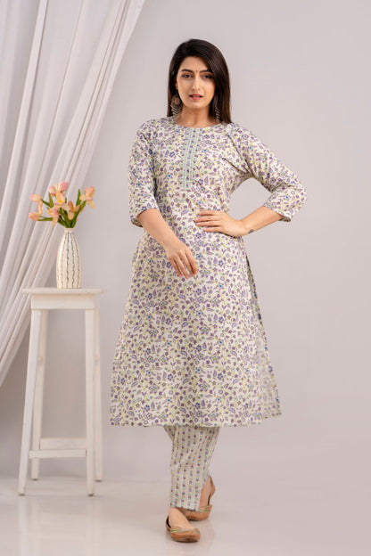 This Women White & Purple kurta set from FrionKandy will add a touch of confidence to your warm-weather wardrobe. Celebrate the romantic, eccentric, and traditional qualities of this kurta set by pairing it with gold accessories.