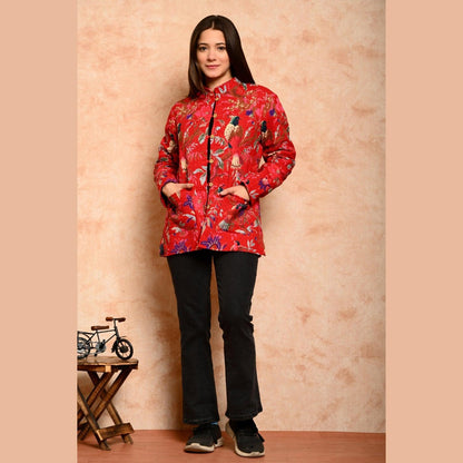 Women's Cotton Floral Print Quilted Jacket - SHKL1012